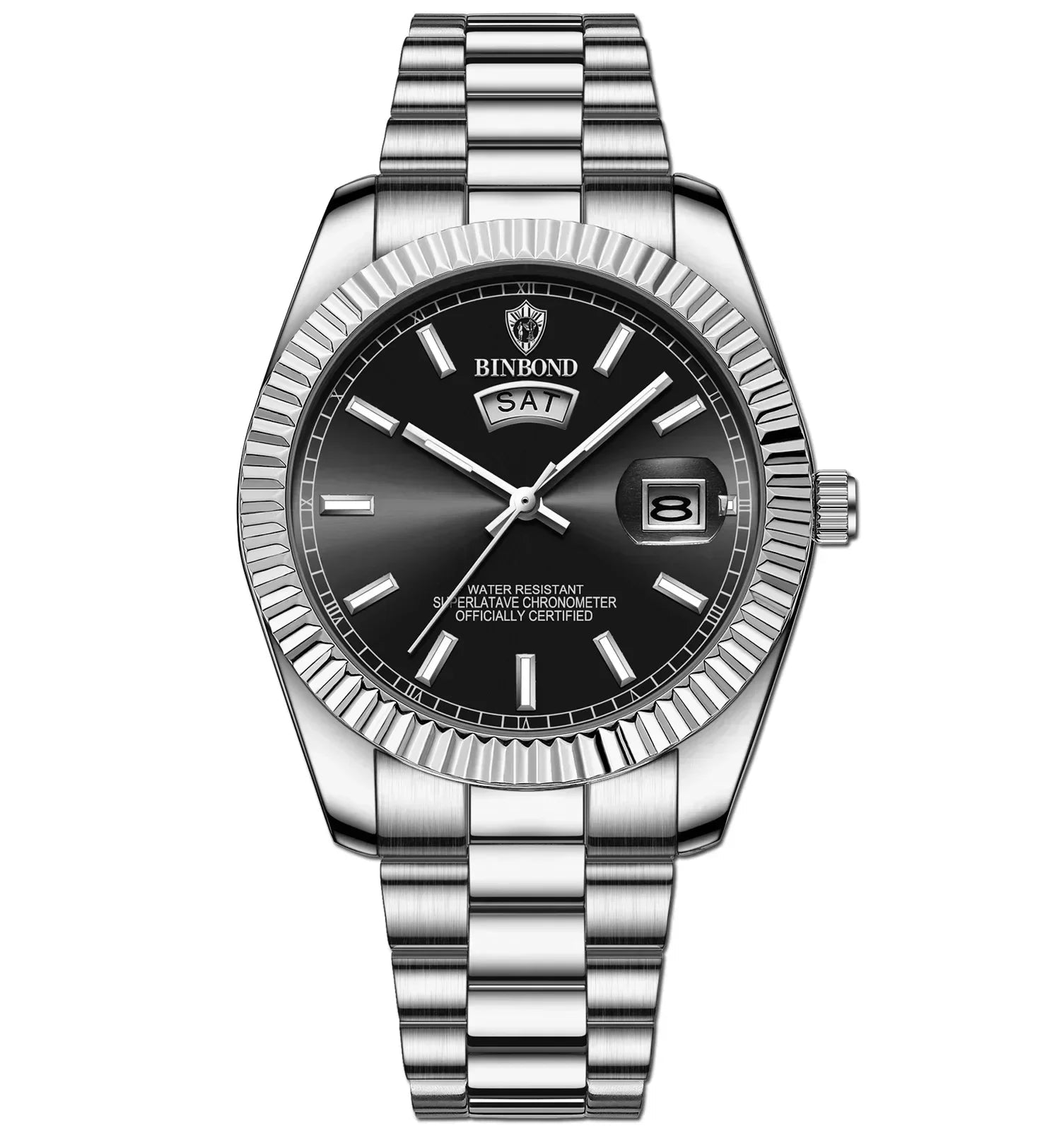 Alvorin blends clean symmetry, polished accents, and a crafted metallic case that embodies enduring sophistication.