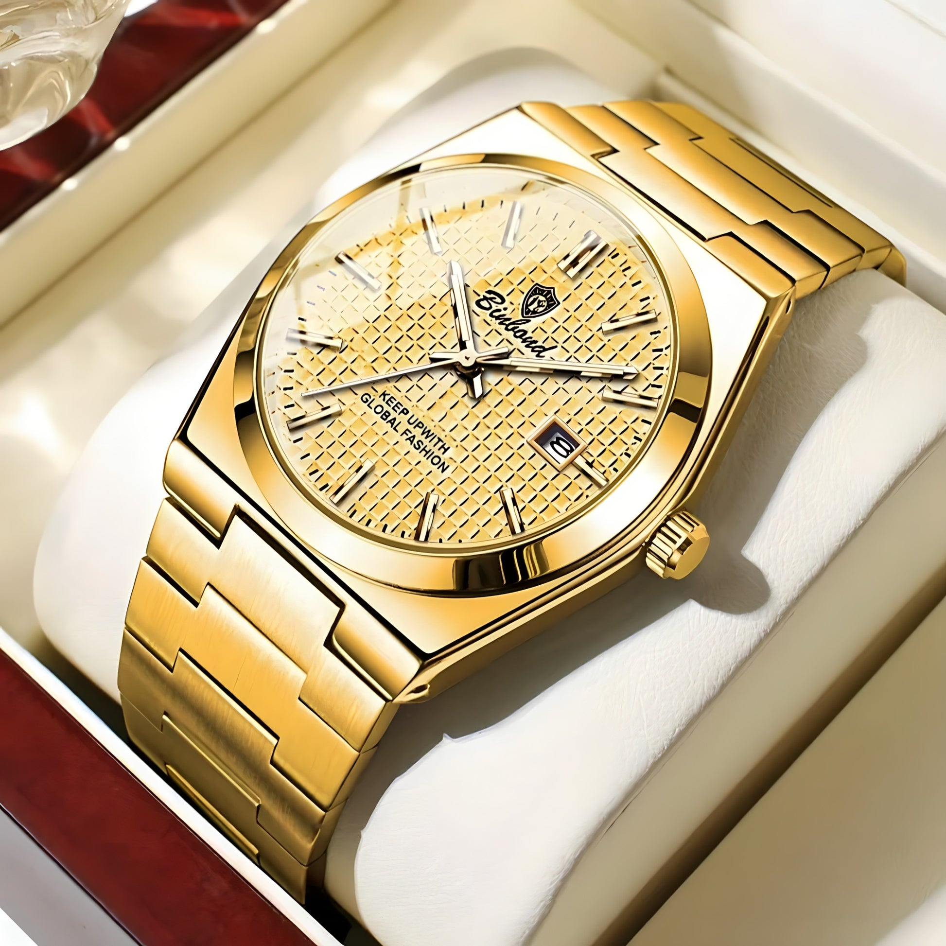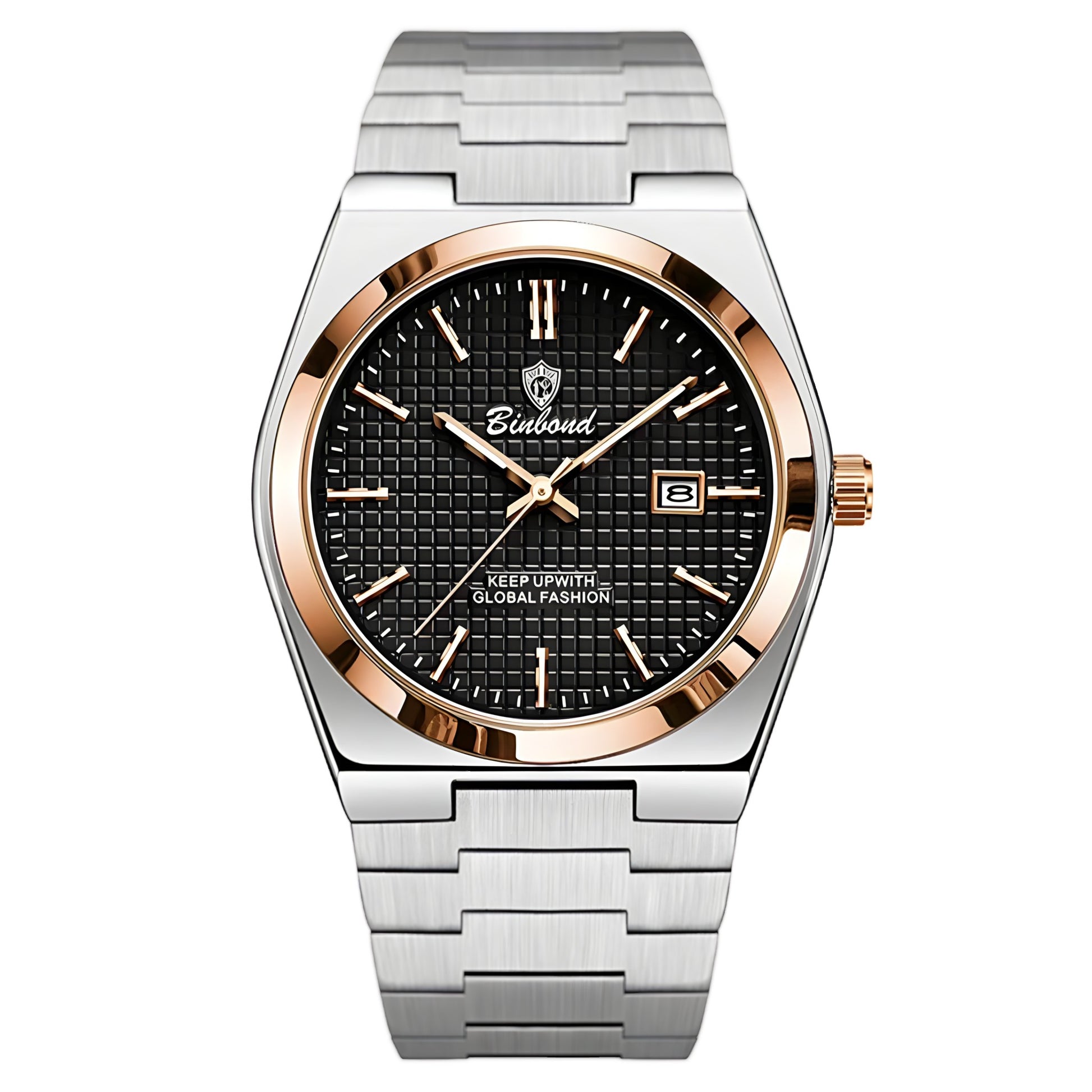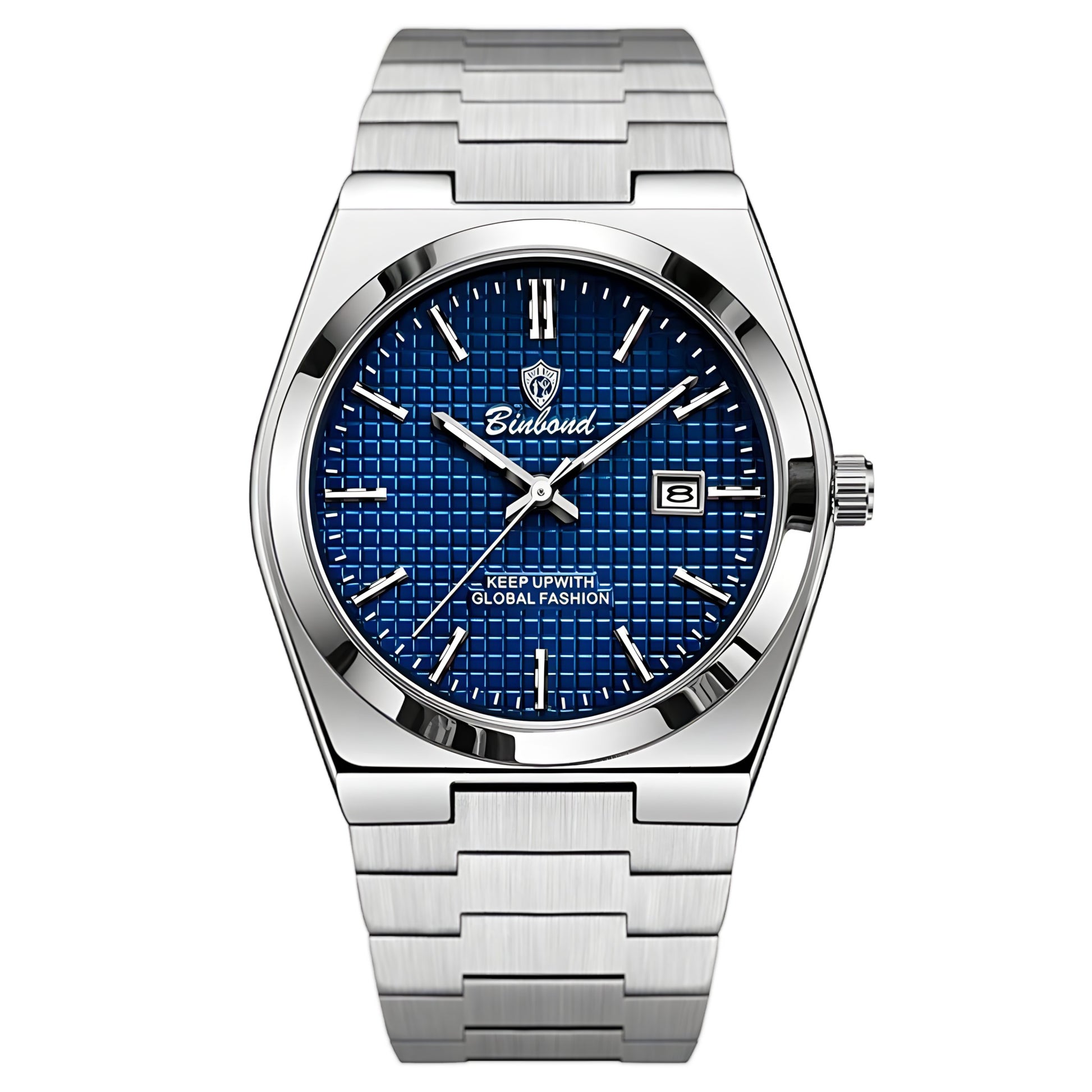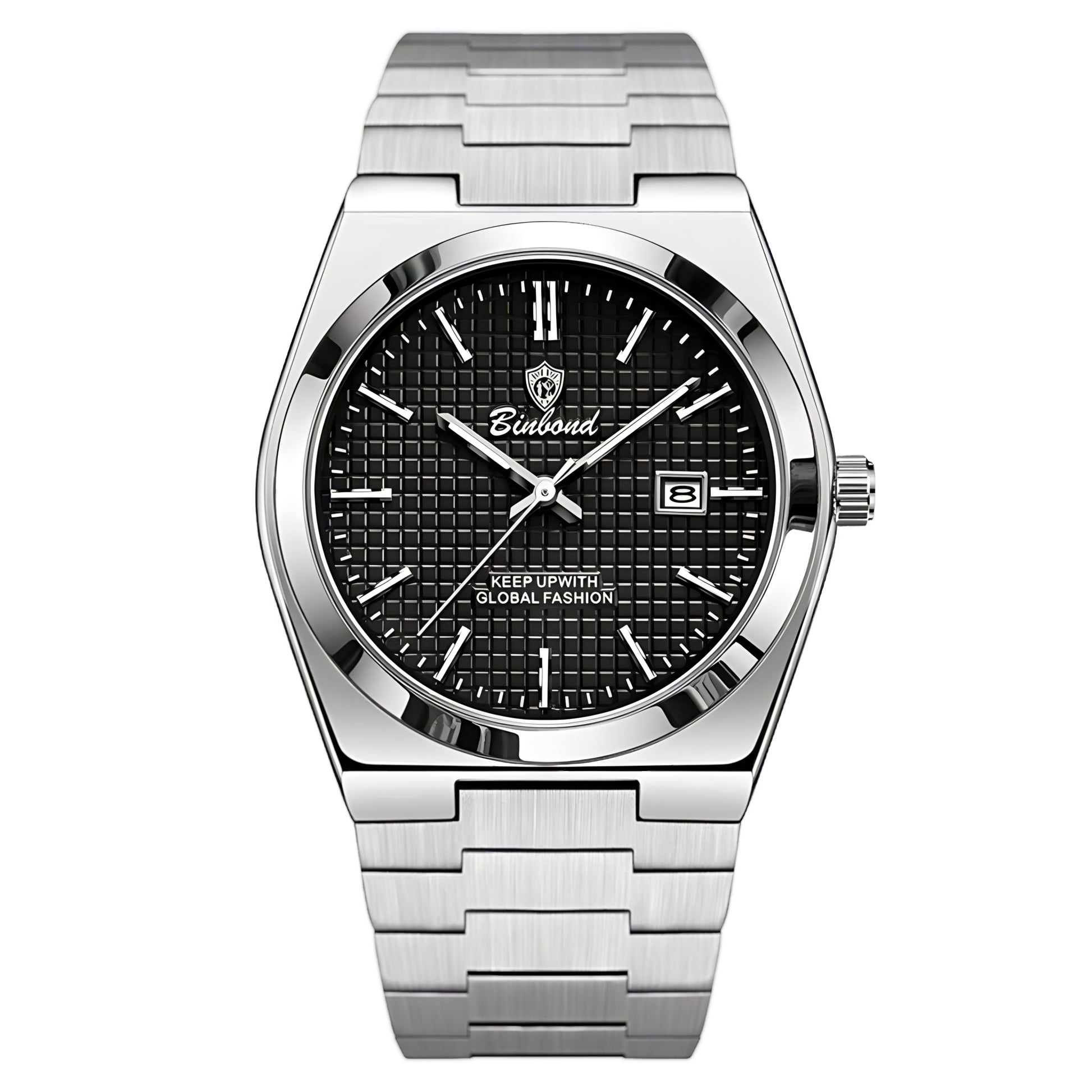 Glacius features a textured dial, high-grade metallic finishes, and a robust stainless steel construction.