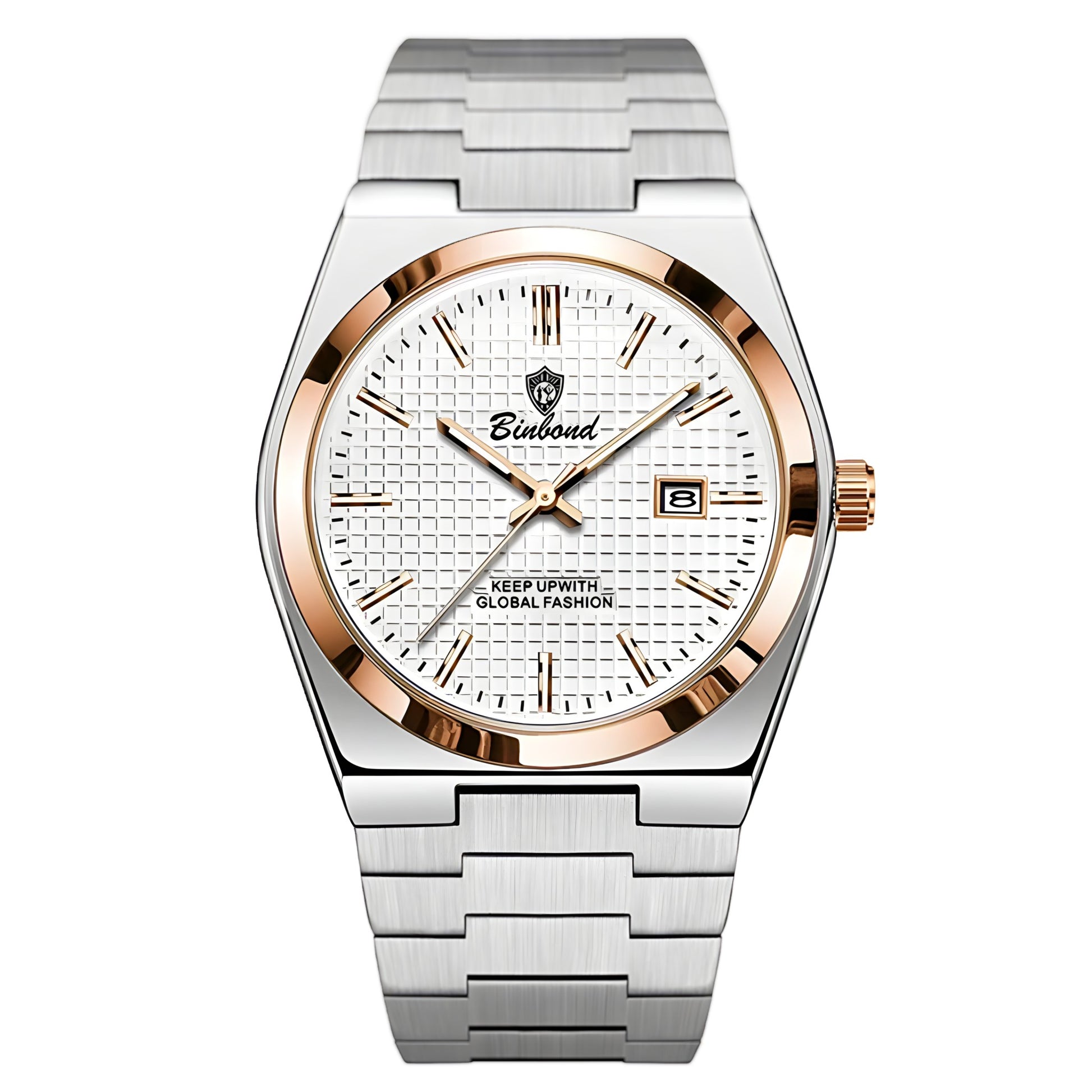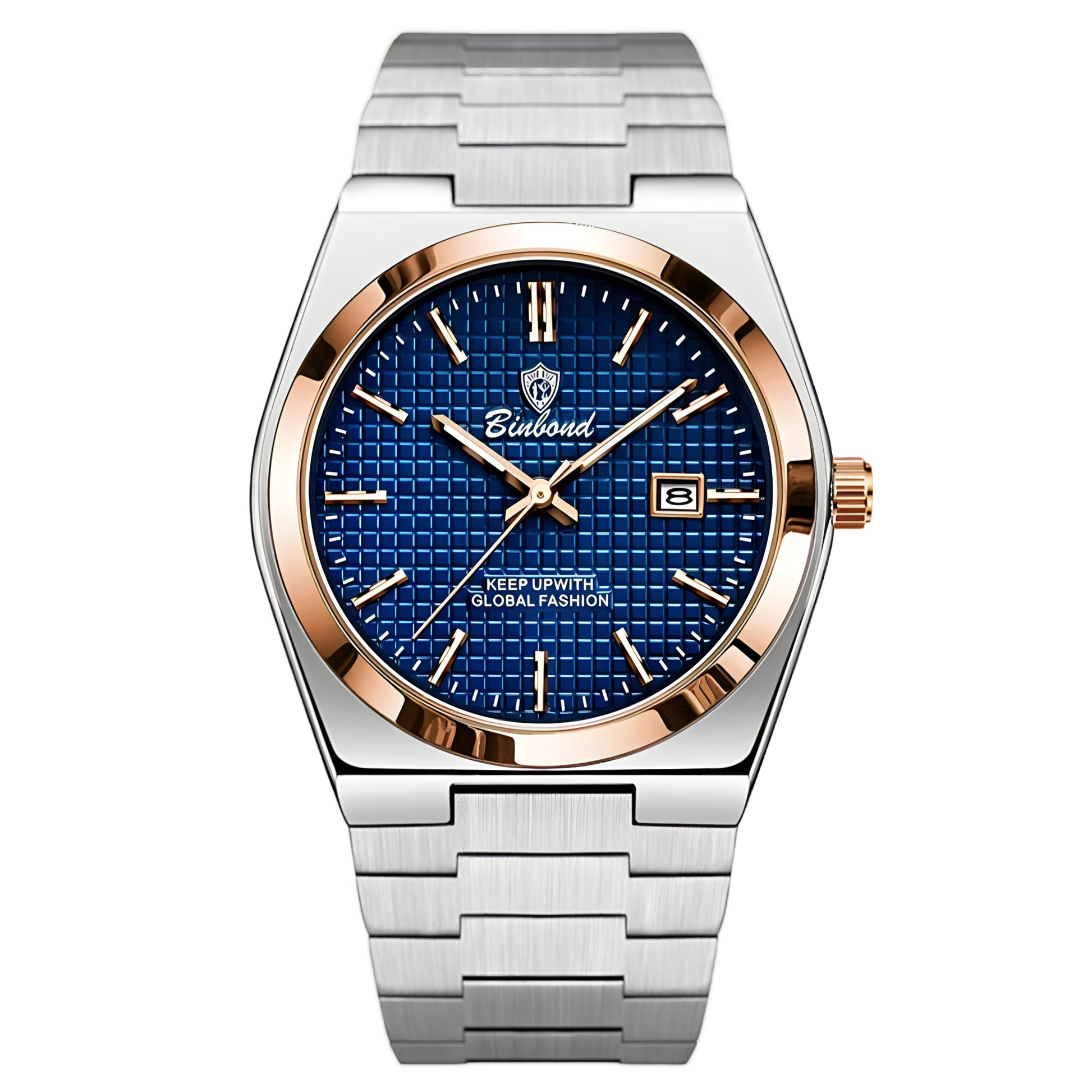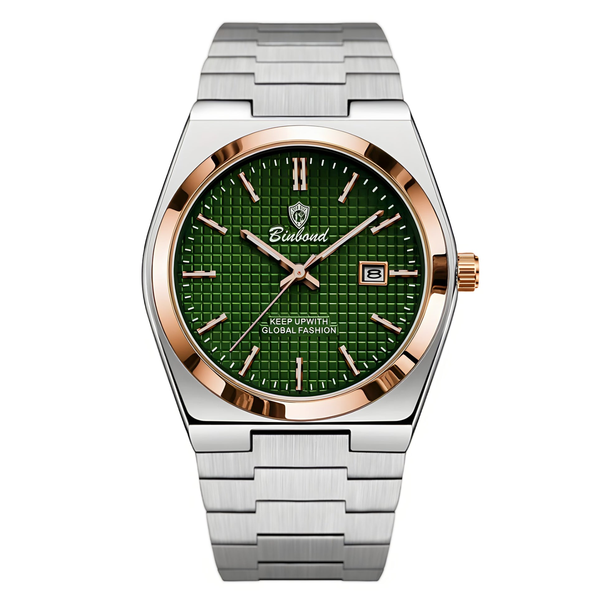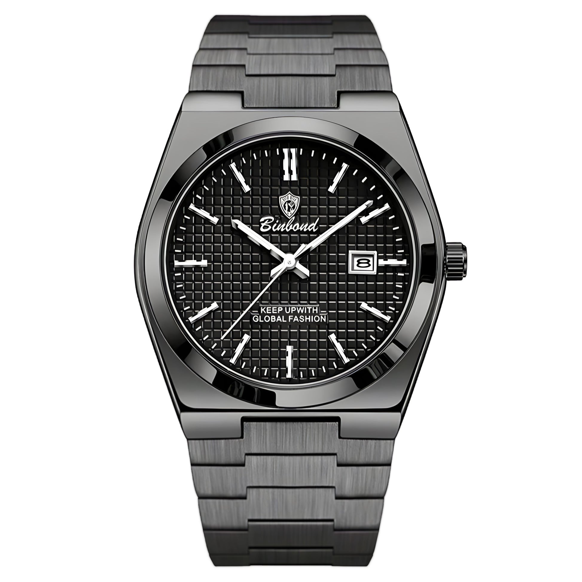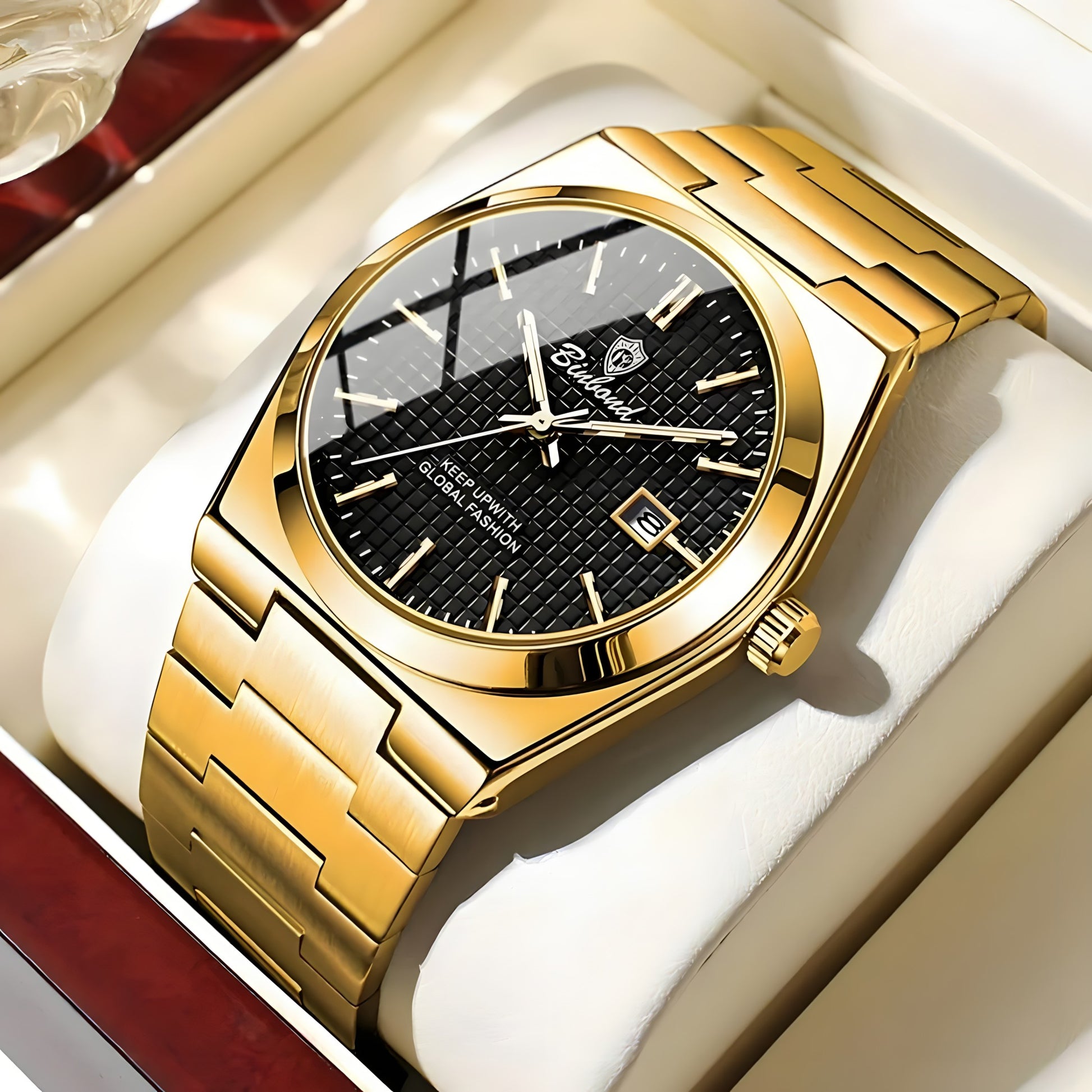 Glacius features a textured dial, high-grade metallic finishes, and a robust stainless steel construction.